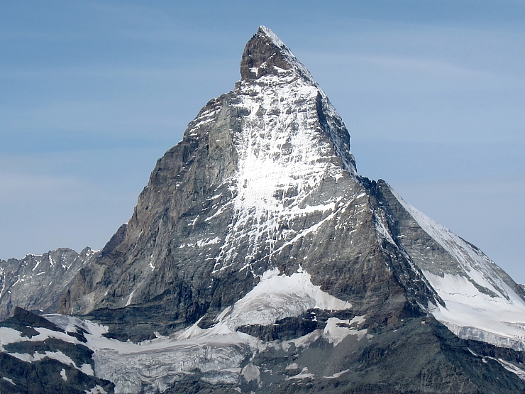 マッターホルン東壁。ほぼきれいな三角形で、右側にわずかに北壁が見える