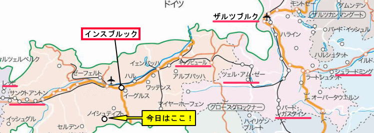 いよいよ今日からインスブルックのスキーだ。天気がよさそうなので、一番大切なステューバイ氷河(シュトゥーバイ、スチューバイ)に行くことにする。