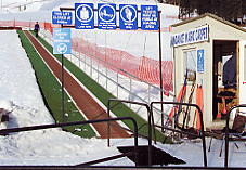 さて、滑ってみよう。ここの斜面はコブなので多少難儀するが、春の雪でやわらかく、滑りやすい。それにしてもコースの作りが直線的なので、見通しはいいのだが、逃げ場が無いので注意だ。