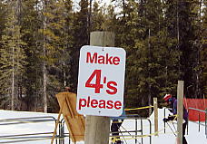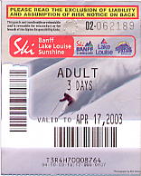 昼食後、数本滑ってあがることにする。長旅の疲れがあるので、初日は張り切り過ぎないようにしよう。ホテルに戻ったあと、明日のキッキングホースの予約を取るためにバンフの中心部へ向かう。電話予約はできるのだが、資料収集も兼ねて予約代理店をやっているスポーツ用品店へ行く。あらかじめ日本でバスの時間をインターネットで調べたらなぜか2通りあったので、どっちが本当かと聞いたら、インズ・オブ・バンフの前を6時55分に迎えに来るのが本当だという。だったら、片方のページは閉鎖しなさい。69ドルをカードで払う。これは往復のバス代とリフト1日券付きだ。ただし、明日は天気は思わしくないとか。ううむ、でも行こう!。少しでも晴れ間が出てくれればいいや。3日目はナキスカに行くつもりだが、連絡が取れない。そうしたらホテルの受付のETSUKOさんが「私が明日までに調べておきましょう」と言ってくれるではないか。秘書でもないのに、すみませんねえ。とりあえず、明日のキッキングホースは早いので、もう寝ることにする。