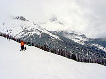 眺めのよさなら左側の斜面で、このさらに左側に広がる3000m級の山々が美しい(らしい)。またバックボウルの部分は本当のパウダー天国で、降雪直後の晴天になれば、親知らず子知らずで自分が楽しむことに専念した方がいい。夢中になってハッと気づいたら女房をどこかに置き去りなんてことになりかねないので、新婚カップルは注意が必要だ。本当にヘリスキー状態になるのだ。