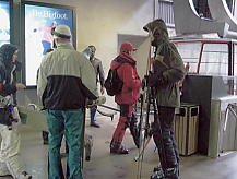 ロープウェイで山の中腹に登る。ロープウェイの中にはスキーヤーとボーダーが5人ほどいた。なんという心強さだ。お互い会話は無いが、南極越冬隊かエベレスト登山隊のような一体感であふれていた。お互いバカだねえ、と言いたそうなあきれたような目で見ながら。 そう、我々はスキーバカ、ボードバカだったのだ。今ごろ気が付いても治しようがない。