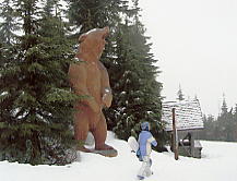 いったん、ブルーベリー・チェアのエリアも滑る。しかし、山頂に向かうリフトは雪不足で閉鎖されていた。このスキー場のロープウェイ駅付近にはクマ牧場やスケートリンクなどがあって、ファミリー対応をしているようだ。