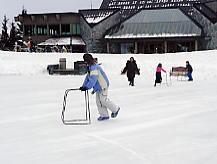 スケート場はスケート靴を履いている子供はいなかった。みんなツルツル滑る長靴をはき、体を支える金属の枠を持ってはしゃぎ回っていた。