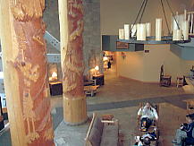 山の中腹は完全なガスで視界は無い。ブーツに履き替えるが、ガスがすごくて遭難しそうだ。これはいかん。やむなく様子を見ることにして、その間は施設を見て回ることにした。ロープウェイ駅はシャレーという施設と一体となっている。このシャレーは夜景を見ながら食事ができるレストラン、展望台があるので、一般の観光客用の設備も多い。バンクーバーの歴史などの資料館もある。