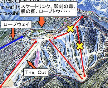 黄色いバツマークは、運行していなかったリフト