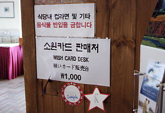このサボテンみたいなのにぶら下げる。 カードにはアラビア語まであったぞ。みんなここに 来たら何か書かずにはいられないのだ |