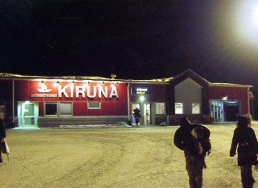| キルナに到着したのは深夜だ | キルナ空港はとても小さいが、 レンタカーのカウンタもあるぞ |