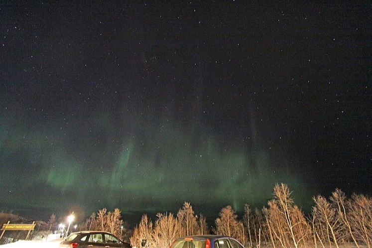 何と言ってもオーロラだろう。ただしオーロラはむやみに北極圏に行けば見れるというものではなく、見たい場合はいくつか注意点がある。オーロラは強い光ではないので、そもそも昼には見えない。キルナは6-7月には白夜(びゃくや)といって、日が沈まない日があるくらいの時期もあれば、1月は極夜(きょくや)と言って、日が昇らない日がある時期もある(北極圏の定義は1年間に少なくとも24時間以上、こういう現象になる地域を指していたが、厳密には色々事情があって、今では北緯66度33分39秒のラインより北の地域を指す)。だからあまり明るい時期に行っても意味が無い。また、雲がどんよりしていたら、当然見えない。後述するが、行った日の夜、飛行機の窓からオーロラが見えたが、その日は地上では「曇っていて見えませんでしたよ」とのことだった。だから晴天率が高い時期を狙うことだ。次に満月の明るい夜よりも新月の暗い夜がいい。当然ながら光るものは地上のものでもだめなのだ。私が行ったのは満月から数日経過していたので、もうちょっとというタイミングだった。なお、キルナではオーロラに遭遇するチャンスは3日に1.66日とからしいが、このあたりのデータはエリアごとにあるので、あなたが行く場所については事前に調べてみるといいだろう。 オーロラの観測については後日の日記で詳しく述べる。 |