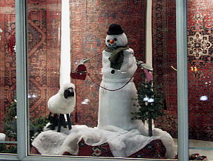| 街中のショーウィンドウで 雪だるまだ! |