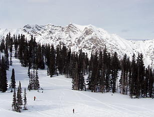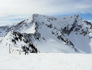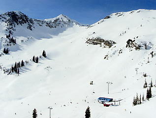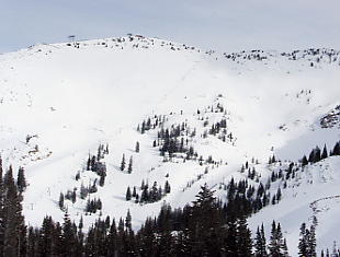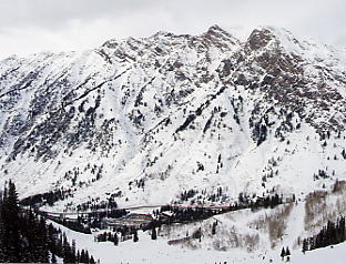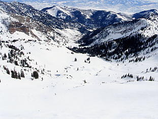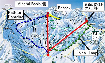 | 上の地図にあるヒドゥン・ピークの裏側、Mineral Basinです。青い点線と緑の点線は動画がありますので、 ご覧ください。(ソルトレイクシティのMOVIE) |