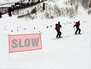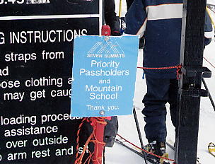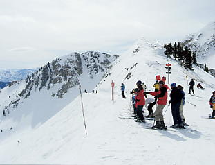 このスノーバードというスキー場はテキサスの石油王、ディック・バスという大富豪が道楽で作ったスキー場として知られる。そんなヤツにスキー場が作れんのかという人もいるだろうが、趣味だからこそ妥協することなくとにかく最高のスキー場を建設しようと全米を探し回り、たどり着いたのがこのソルトレイクの山中だった。標高が高く年間10mを超える雪が降るが、砂漠で相当の水分を抜かれて非常に軽い。アメリカのスキー雑誌「Skiing」が行う「北米で最もすばらしいパウダースキー場」では、隣接するアルタとここスノーバードが何度も1位争いをしているのだが、2002年シーズンに山頂部にリフトを追加してつなげてしまったので、1つの共通券で両山を滑ることができるようになった(でも、やめたがいい。片方だけでも1日では足りないくらいだ)。その後も設備投資を続けており(時には自然保護団体の反対を無視して)ディック・バス氏の野望はまだとどまるところを知らないようだ。 ソルトレイクの概要のページでも言ったが、バンフやウィスラーのような、日本にはない「ロッキー」の山容を堪能するならば、このスノーバードが一番だと思う。 ちなみにこのディック・バス氏は「世界で最初に世界の7大陸の最高峰を登った」ことで有名だ。登山家としてはアマチュアだったが、50歳を過ぎてからお金にモノを言わせ、大勢のガイド・シェルパをやとい、最後にエベレストに登って達成した。これ以来「エベレストはお金で登れる山」になり、毎年モンスーンがおさまる5月ごろに世界じゅうから「商業登山隊」が集まるようになったのも彼が草分けだ。 朝、ホテルのロビーでガイドと待ち合わせる。私ひとりのために半日のガイド付だ。一人催行保証のための追加料金も納得だ。 ホテルのすぐ前にバス停があり、日曜日に限り、スキーバスが来る。このへんのバスは15分くらい遅れてくるのは許容範囲内だが、必ず来るというが、本当に15分遅れでやってきた。脇にスキーやボードの板を置く器具があるのですぐ分かる。ここからすぐフリーウェイに入って市街地を抜け、スキー場へ向かう。途中、3ヶ所くらいの駐車場に寄る。これは渋滞を避け、環境を守るためにスキー場から離れた場所に駐車場を設けて、できるだけそこからバスに乗ることを推奨しているかららしい。ホテル前で8人くらいだったバスが満席近くになり、スノーバードのスキー場に到着した。 到着していきなりアメリカのスキーリゾートを実感させてくれたのは、ロッカーだった。スキーブーツに履き替え、それまで履いていた靴はロッカーに預けるのだが、このロッカーがくせものだった。小さいものでも4ドルもしやがるのだ。ただし、1日に何回でも出し入れしていいという。クレジットカードでOKで、受付られるとレシートが出てきて、空いているロッカーのランプが点滅する。中に靴を入れて閉めると鍵がかかり、開けるときはレシートに書いてある暗証番号を打ち込むというシステムだ。こんなのは見たことないし、クレジットカードでロッカーを使うなど初めてだが、とにかく使うことにした。 さて、ここには125人乗りのロープウェイ「トラム」があり、標高2468mのベースから約8分で標高3352mのヒドゥン・ピークに運んでくれる。リフトが架けられているスキー場で日本で最も標高が高いのが志賀高原横手山の2305mだから、ベースからいって日本のどのスキー場よりも高いのだ。こりゃあ期待できそうだ。 |