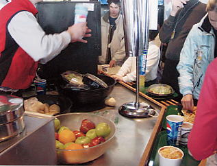 飲み物は紙コップだけ先に買う。 りんごはどこのスキー場にもあった |
