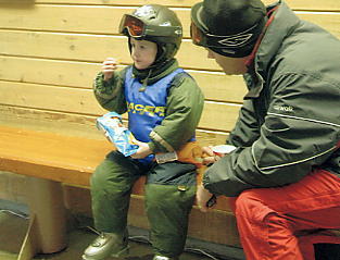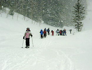 | フカフカコースだ。 右上のボカシは、レンズに付着した雪だ |