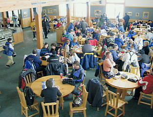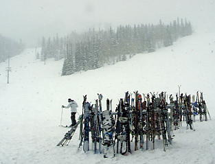 スキーセンターなどどれを見ても今までのスキー場とはだいぶ様子が違う。とにかくちんまりとしている。とりあえず最下部のステーションからクワッドで登り、そこから尾根を横断するようにしてビレッジへと向かった。 リフトは地図を見ても分かるとおり、決して機能的ではない。HoneycombCanyonは繰り返し滑るのは至難の業だ。また、ビレッジから出ている中央2本のリフトは左側が右側を包括しているので、あまり意味がない。最下部からのクワッドをさらに上部に伸ばしてビレッジに一発で回れるようにするか、いっそのことゴンドラでも架ければHoneycombCanyonを繰り返し滑るにいいだろう。まあこんなことを言っていたら日本の古いスキー場のリフトなんか何言われるか分かったもんじゃないが。 ビレッジでもそれほど客が多いわけではない。まあ、いいか。リフトに乗り、かるく足慣らしだ。雪は強くなったり弱くなったりで落ち着かないが、雨でさえなければいいか。降りたての雪はフカフカで、さすがという感じだ。ちょっと滑ったら、ソリチュードのシンボルを掲げた丸太の標識があり(写真見て)、いい感じだ。そういえば石打丸山にもチロルのモニュメントがあったが、私はソリチュードの方が好きだ。 なにはともあれ最上部へ。しかしガスと風が強く、景色のケの字も見えないので早々に退散した。コースは雪が積もり始めていて、10cm以上はあっただろうか。浮遊感にはまだだが、「軽さ」を感じるには十分だ。くるぶしくらいまでの、空気のように軽い雪の上を滑った。 中腹にあるレストランに入る。中はけっこう人がいて、にぎやかだ。食事も今までより値段が安いのがいい。私は丸いパンをくりぬいてスープを入れたものを食べたが、なかなか腹いっぱいになるものだ。 レストランで例によって近くの客と話したのだが、私が会ったのはオヤジと息子というパターンだ。母親は別の所に遊びに行っているという。こういうパターンがなぜか多い。必ずしも一家全員とは限らないのがアメリカの国民性かもしれない。日本だったら離婚間近かと近所の評判になりかねないが、アメリカ人は自分がイヤなら家族であろうと「行きたくない」とはっきり言うのかもしれない。レストランで会った親子はキヤノンのデジカメ(Power Shot)をとても気に入っていて、私がキヤノンの社名の由来を話したら非常に感心していた。ちなみに私がソルトレイクに持ってきたのはソニーのデジカメだ。 とりあえず一通り見ておこうか。少なくともリフトは全部乗っておこう。食後は軽く流すつもりだったが、どんどん積もっていく雪がうらめしくなり、シュプールの無い所を見つけて、繰り返し滑ってしまった。あと1日あれば、降りたてのパウダーを楽しめるのに。 それでも林間などには浮遊感を感じるほどの深い雪もあった。10日以上前の雪が柔らかいまま残っていたからだろう。 そしていつもの約束だ。パウダーエリアは入り口が狭められていて、そこには通過するスキーヤーの鼻先に突きつけるような看板だ。要約すれば「いいか、これだけ言ったんだからケガしてもおまえのせいだからな」ということになる。 なんか脅かされているみたいで、これが客商売かよと思うかもしれないが、この看板はスキー場にとっても生命線となるのだ。遭難事故など起きようなら、スキー場がつぶれるような賠償金が出かねない国なのだ。人がいなかったので、私はやめておいた。 さて、帰ろうか。アメリカ、そしてアメリカ人を感じた5日間だったなあ。スキーベースに戻ると、そこにはどこか懐かしい光景があった。ロッカールームのイスにはどこかの複数の家族がそれぞれ固まって、ランチをとっていた。サンドイッチはおそらく母親の手作りだろう。みんな楽しそうだ。あの安いレストランの費用をさらに節約してのことだろうか。今までの金満リゾートスキー場とはちょっと趣が異なるが、これがきっと地元に根付いた、ソリチュードの魅力なのかもしれない。 極上のパウダーでありながら、全体が小ぶりで人が少ない。リフト券もレストラン料金も安い。地元民に人気があるのも当然だろう。もしあなたがソルトレイクに行くならば、日本離れしたスキー場としてスノーバード、ディアバレー、パークシティを推薦しよう。しかし日数に余裕があるなら、このちんまりしたソリチュードにも行ってみてほしい。きっと好きになるだろう。 今日は早めにあがり、明日の帰国にそなえて土産を買ったり、いろいろ市内を回った。このレポは最終日の市内ガイドということでまとめて報告しよう! |