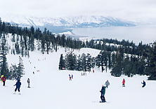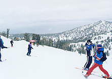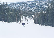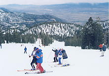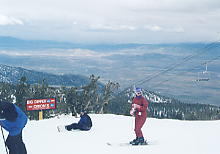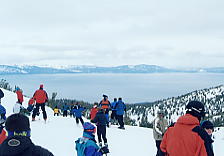 今日もネバダ側から登る(巡回バスのルートからいうと、そうなる)。砂漠を背にしながら雪山をリフトで登るのも一興だ。ただし、昨日と同じような雪質であるから、飽きやすい。趣向を変えて、ビデオ大会をやったりした。それにしても、広大な湖を見ながらのスキーはアメリカに来たという実感があり、こればかりは飽きないものだ。