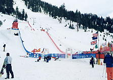 今日はネバダ側のベースのレストランで昼食。昼過ぎにはいったんカリフォルニアのベース近くに降りる。すると、なぜかモーグル大会があるらしく、観客用のセッティングが準備されていた。ん?何事だ?するとパトロールのねえちゃんが、「モズリーが来るのよ!」と言った。そう、日本では「モズレー」と発音されているが、あの長野オリンピックのモーグル金メダリスト(グラブヘリという、手で板をつかんだまま、横に1回転してしまう、世界でも彼にしかできない技を持つ)が来るという。時間があったら、見てみたいものだ。