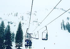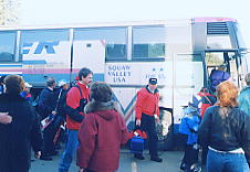 今日はスコーバレーに行く。レイクタホを挟んで宿泊地の反対側にある、少し山の中に入ったところにある。乗合バスで行った。