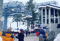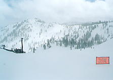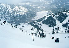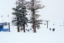 とりあえず全員で最上部まで一気に上り、最初の1本を滑る。上部はガスが出ていて、小雪であった。レイクタホは見えないが、ビデオ等を撮影し、なおかつ、距離も滑った。いったん滑り出せば、リフト1本はノンストップで滑る。平均年齢は高いといったけど、よく付いていくなあ。