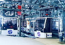 ベースに戻ると、今度はゴンドラに乗る。このゴンドラはできたばかりで、総工費2000万ドル(約25億円!!)という、日本ならスキー場そのものがいくつも買えてしまうようなシロモノだ。名前はファニテル(Funitel)という。ダブル・ケーブルになっていて、強風にも強い。28人乗り(15人が壁際に中央を向くようにぐるっと座り、その中で13人が立つような設計)の化け物だが、これが46台連なり、1時間に4100人もの人を運ぶことができるという。これだけでも集客になるというものだ。