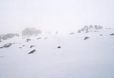 スレドボはベースが2ヶ所ある。昨日とは別のベースからスタートする。今日は山の上がややガス気味で、奇岩群地帯は不気味な雰囲気だ。まるで墓地をさまようみたいで気分が悪い。中腹より下は晴れていて、虹まで見えた。それにしても今日はリラックスムードであった。