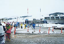 私はここで手袋をオシャカにしてしまった。ぬれた手袋を早く乾かそうと暖房装置のすぐ上に置いたら、3割くらい縮んだうえに、まるで石膏を流したように固くなってしまい、使い物にならなくなってしまったのだ。ショッピングセンターでボーダー用の手袋(1500円くらい、なかなかいい)で後日をしのいだが、実に参ってしまった。