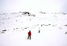 スレドボ(3、4、5日目) ペリッシャー・ブルーカウ (6、7日目) ペリッシャー・ブルーカウ (6、7日目) スレドボ(Thredbo)は、オーストラリアを代表する大型のスキー場だ。このスキー場に隣接した宿泊施設を利用するのでなければ、バスで40分くらい離れた所にある人工湖に面したリゾートタウン、ジンダバイン(Jindabyne)に宿泊することになる。ここに宿を構えると「スレドボ」と「ペリシャー・ブルーカウ」の2つのスキー場を楽しむのに便利だ。 オーストラリアの時差はプラス1時間なので、ほとんど時差は無いといってよい(ただし、油断はならない)。スレドボそのものはマイナーな町なので、いったんシドニーに入り、そこから国内線で山の中の首都キャンベラに入る。そこからバスで90分だ。 その周辺はスノウイーマウンテン(Snowy Mountain)と呼ばれ、広いオーストラリア大陸の限られたスキーエリアがある。 (スレドボ) 標高2037mのクラッケンバック山にある。標高差672m、最長滑走距離はオーストラリア最長の5kmなので、データ上は苗場を少しやさしくした感じだ。しかし実際には上部は木が生えていなくて開放感満点、オフピステを開放しているので混雑は無いので、こちらの方がはるかに広く感じられる。 ベースはフライデー・フラットとバレー・ターミナルの2ヶ所があるので、一人で行動する時は要注意だ(無料シャトルバス有り)。 技術的には中級〜上級向けとされているが、コースを選べば初心者でもOKだ。 (ペリシャー・ブルー) Perisher Blue は標高2054mのペリシャーを筆頭に、3つの山に渡って、ペリシャー・バレー、スミギンズ、マウント・ブルー・カウ、グシーガの4つのスキー場のつながりの総称である。広さではオーストラリア最大級であるが、比較的平坦で初心者向けのケースが多い。 ここでびっくりするのは、スキー場へあがるのに、何と、スイス式の山岳列車である、スキーチューブ(地下鉄)を使うことである。このスタイルはヨーロッパでは珍しくないが、初めて見た時は実に奇怪に見えたものだ。 地理的にはジンダバインの町からバスで20分程度でブロックス・フラットという地下鉄の駅に到着、そこから1時間に1本、24時間運行というチューブに10分くらい乗ってゲレンデに行くことになる。駅はスレドボより町に近いが、ゲレンデは少し遠くなる。