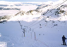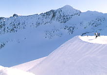 このウィスラーは私が最初に行った海外スキー場でもあり、唯一、同じ場所に2回行った所でもある。このウィスラーのページでは、特に、初めて海外スキーに行く人のことを意識して紹介したい。 なお、私が行ったのは94〜95年と95〜96年の年末年始の2回だが、日記の方は95〜96年をベースにして、94〜95年からは若干のエピソードを採用することにした。 また、ウィスラーはゲレンデの増改築や変更が頻繁にあるので、詳しいスキー場データ、最新情報は他のサイトをご覧になることをお勧めする。 (1)旅行費用 旅行代金は非常に安い。バンクーバー行きの便が多いことと、旅行会社の取り扱いも多いので、ヨーロッパや南半球と比べて格段に安い。私は13日(滑走10日)で往復エアと宿泊(2人部屋、朝食付)で14万円ほどだった。これは出発日を考えるとまだ高い方で、ビレッジにあるホテルのパックはもっと安いことを付け加えておこう。ただし、基本的にどこも夕食は付かないものだと思っておいたがいい(ヨーロッパは食事込みが多い)。 しかし、クリスマス休暇に入る金曜日の場合は、同じ日数だと6万円くらい、一気に上がる。年末年始にからむと、10万円も上がるものもある。私よりも後に来て、先に帰った人の方が8万円も高いことがあった。上司を拝み倒してでも、賄賂を贈ってでも有給をもらおう。私は休日出勤の振り替えという強制力の強い休みをあてて22日ごろから休んだが、1日でも遅れると3万円も違っていた。 物価は安い。ビレッジ内にはスーパーマーケットもあり、食品など安く、肉類は特に安い。日本より高いのは、タバコと日本製カップめんくらいであった。ちなみに、タバコは1箱500円以上する。税金のかかりかたがすごいのだ。税金のかたまりだ。ついでに、カナダでは屋根のある場所は全て禁煙だと思っていい。タバコ嫌いの私には、助かった。 (2)ツアーの種類 英語に自信があれば、自分ですべて手配することもできる。インターネットなどで宿を確保したり、エアと宿泊だけのパックツアーを料金だけで決定し、現地での送迎バスや、スキー場ガイドは不要だ、というものだ。滑走日数が4日以上あるなら、自分で地図を見ながらでも滑ることはできる。全コース滑走は難しいが、もともとそれは国内スキー場でも意味がないこと。主なコースは制覇できるだろうし、後で「重要なポイントを回れませんでした」とか「あの景色を見る時間がなかった」ということはないだろう。案内表示やリフト、各種サービス等、マーケティングが実によくできており、迷う心配もない。 2週間以上の長期滞在で無い限り、ウィスラービレッジのホテルを利用することをお勧めする。私は2回とも会社の先輩と行ったので、先輩行きつけのアルパインメドウズにあるアルパインロッヂというロッヂ(送迎車で5分)に行ったのだが、送迎車の時間があるため、常に時計を気にしていなければならなかった(しかも、ビレッジのホテルよりもツアー料金が高いのだ)。 ウィスラービレッジのホテルには日本の旅行会社のデスクがあるものもある。ホテルには飲食や遊戯施設もあり、ビレッジを散策するにも便利なので、特に1週間くらいの滞在では、ウィスラービレッジに宿泊することをお勧めする。 ただし、このウィスラービレッジはどんどん拡大している傾向にある。ビレッジ内のホテルからは、板をかついでスキーブーツのままゴンドラ乗り場(ブラッコムへは連絡ゴンドラ乗り場)へ歩いていけるが、遠く離れた新しいホテルからだと結構歩くことになるので、注意が必要だ。 このウィスラービレッジも毎年変化拡大しているので、最新情報を入手しておくこと。 最高級ホテルはブラッコムにあるシャトー・ウィスラーで、毎年クリスマスにはミック・ジャガーがスキーで宿泊しに来ることで有名だった。最近、ウィスラーとブラッコムの両方にアクセス便利な(ゴンドラの目の前)日系(東急系)のパンパシフィックロッヂ・ウィスラーというホテルができて、アメリカのスキー雑誌で、「北米で最も満足度の高いスキーリゾートホテル」を受賞しているので、要注目だ。次回行く時は、利用してみたいものだ。 (3)スキー場の性格 世界の7カ国を回った今になって振り返ってみると、「ガンガン滑るためのスキー場」「マーケティングがよくできたスキー場」「楽しむことを意識したスキー場」という印象がある。初めて海外スキーに行く日本人にはパウダー天国、エクストリーム、リゾートライフという印象を受けるだろう。日本国内の30ヶ所くらいを滑りまわった私でも、初めての海外スキーのせいもあってか、非常に新鮮なインパクトがあった。海外スキー入門者にはとにかくおすすめだ。 (4)日本のスキー場との違い @1本のゴンドラやクワッドの長さが長い。 そして、やたら速い。クワッは2.0Kmから2.5Kmが多く、ゴンドラは5Kmを超える。したがって、クワッドは日本のゴドラ1本分であり、気に入ったバーンを繰り返しゴリゴリ滑る