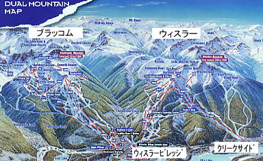 ウィスラーの概要 ウィスラー(Whistler)はカナダ北西部、太平洋に面したバンクーバーから車で一時間半ほどの場所にある、スキーリゾートである。日本人に好きな海外スキー場のアンケートをすると、毎年必ず1位になるスキー場であり、当然、行ったことがあるスキー場でも1位である。その理由としては、海外スキーとしては近いことと、料金が安いこと、そして多くの人がいったことがあり、情報も豊富であることがあげられるだろう。 |