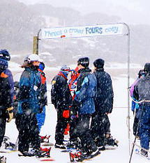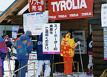 | 初めて見た時は驚いたが、最近は結構、見るようになった。どうもボーダーはコンビニ弁当を持ち込み、リフト券を買わずに斜面を登って練習するので、駐車場料金以外はお金を落とさないらしい。これも不景気のなせる業であり、政府の責任は重大である。 猪苗代スキーリゾートにて。 |