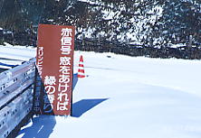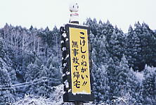 | 「赤信号では止まれ」と命令するよりはいいコピーと思うよ。でも、この後オリンピックのために新トンネルが開通して、不要になってしまった。 志賀高原の高天原手前で。 |