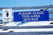 | 左の絵の看板を見れば、英語が読めなくても、意味が分かる。ちなみに左には、KEEP CLEAR OF T(Tバーのこと)とある。 スレドボのTバーを降りてすぐのところで。 |