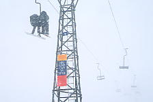 | 「HIRE YOUR OWN SKI TUTOR」 スレドボのリフトの鉄塔には、よくスクールの広告を見かける。他には、 「TIPS ON KEEPING YOUR TIPS UP」 など。 |