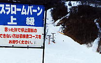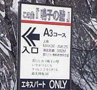 | 「思った所で停止回転のできない方は初級者コースをお滑りください」 上級とか中級とかでなく、こういう表現の方が分かりやすい。要は、コントロールできないヤツはやめろということだ。 軽井沢プリンススキー場で。 |