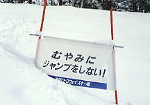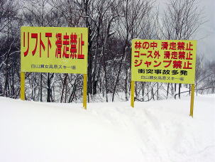 | 上の写真と比較してみて。 あれこれ面倒なことをコチョコチョ言わずに、リフトを降りたところで一度にまとめて禁止だ!。 でも、いっぺんに覚えてもらえるかな?。 |