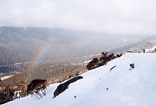 | 「虹を見ながら」 いいねえ、映画のタイトルみたいで。 この下では「虹に向かって」滑ることができたが、その写真は角度と明るさの関係で、Webでは見えにくい。とりあえず、これで我慢してね。 |