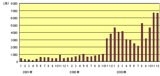 ※2002年12月のデータは2003年1月に合算。2003年6月22日〜12月27日まで |