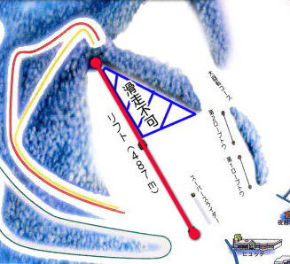 | 夜越山スキー場 (Webを加工:赤いコースは初級者、黄色は中級) ![]() |