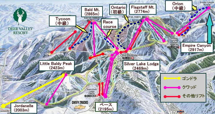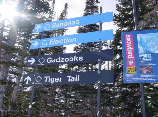| 上の地うの青の点線、中級のバナナコース(Bananas)は、景色も斜度も良く、なかなかゴキゲンなコースです。さあ、あなたもいっしょに!。 (15.20MB 3分21秒) |