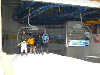 地図の右上にあるObereHubelの2本のうち、左のリフトに乗りながら、左側の景色を見ています。 左側の圧雪コースを滑っている集団を見ると、いかに広い場所かが分かるでしょう。 (3.2MB 38秒 320×240 中画面) Panasinic FX9 |